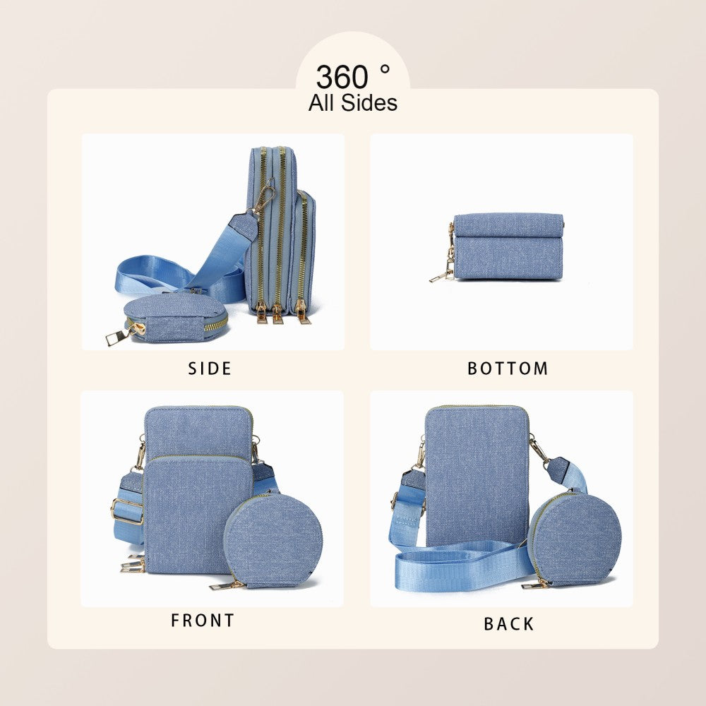 Women’s Canvas Crossbody Phone Bag with Coin Purse – Denim Blue, Lightweight Shoulder Bag for Travel & Everyday Use