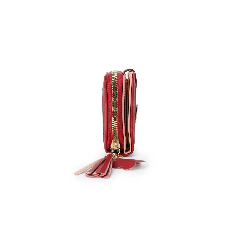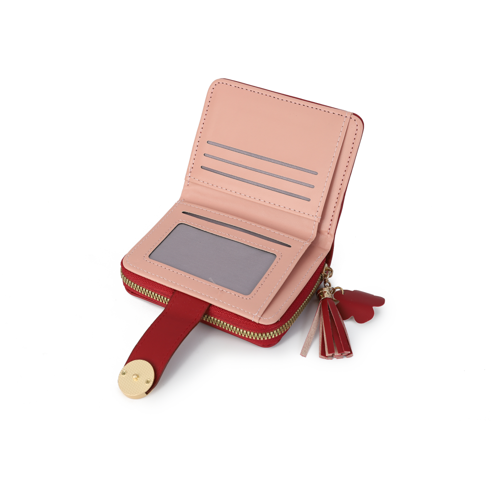 Measuring 8 cm x 10.5 cm, this small yet practical wallet is ideal for slipping into your handbag or carrying on its own. It features multiple card slots, a clear ID window, a zippered coin compartment, and dedicated sections for cash and small essentials. The smooth zipper closure keeps everything safely in place, while the chic tassel charm adds a modern, playful touch.