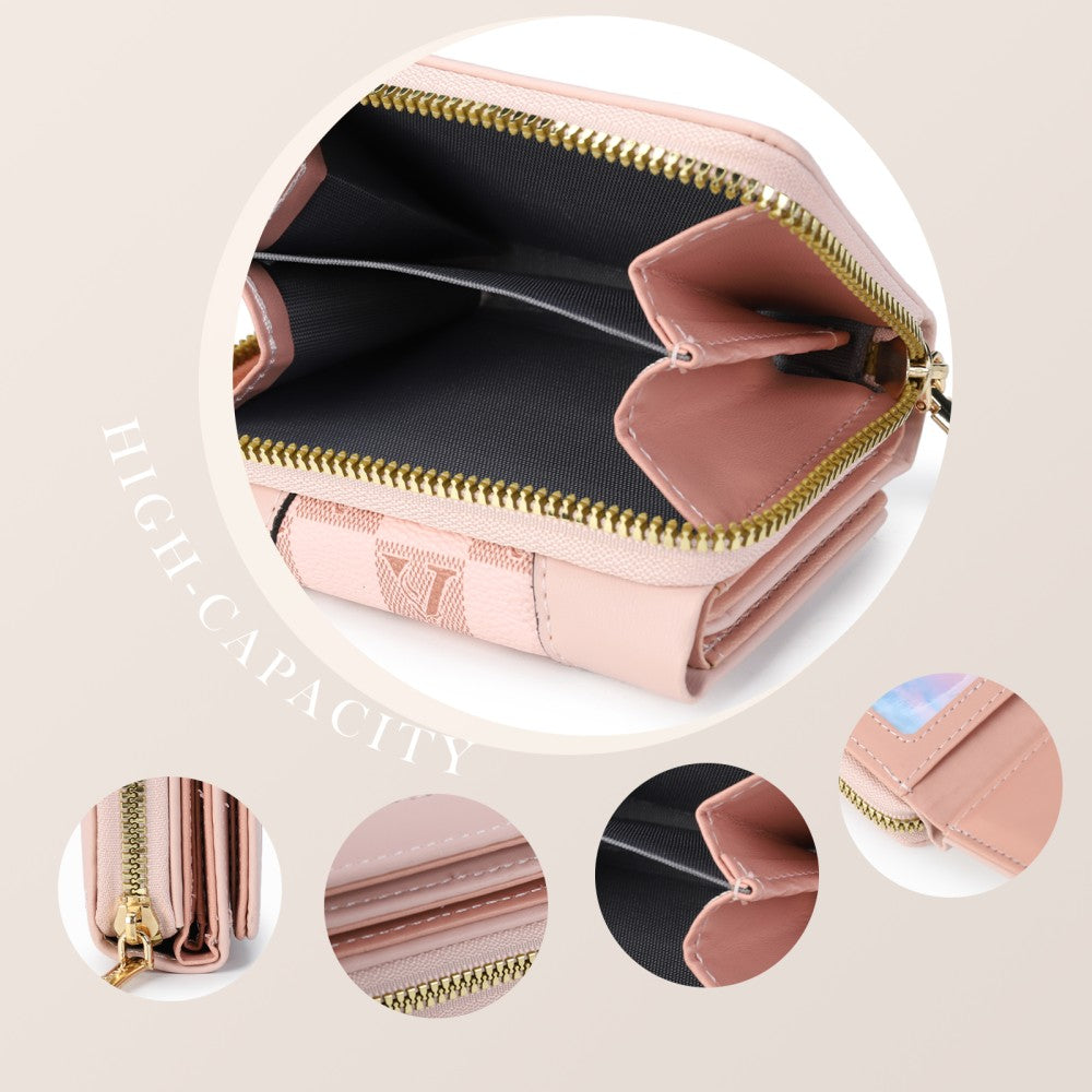 Perfect for everyday use or as a thoughtful gift, the Checkered Accent Compact Wallet is the ideal blend of practicality and fashion.