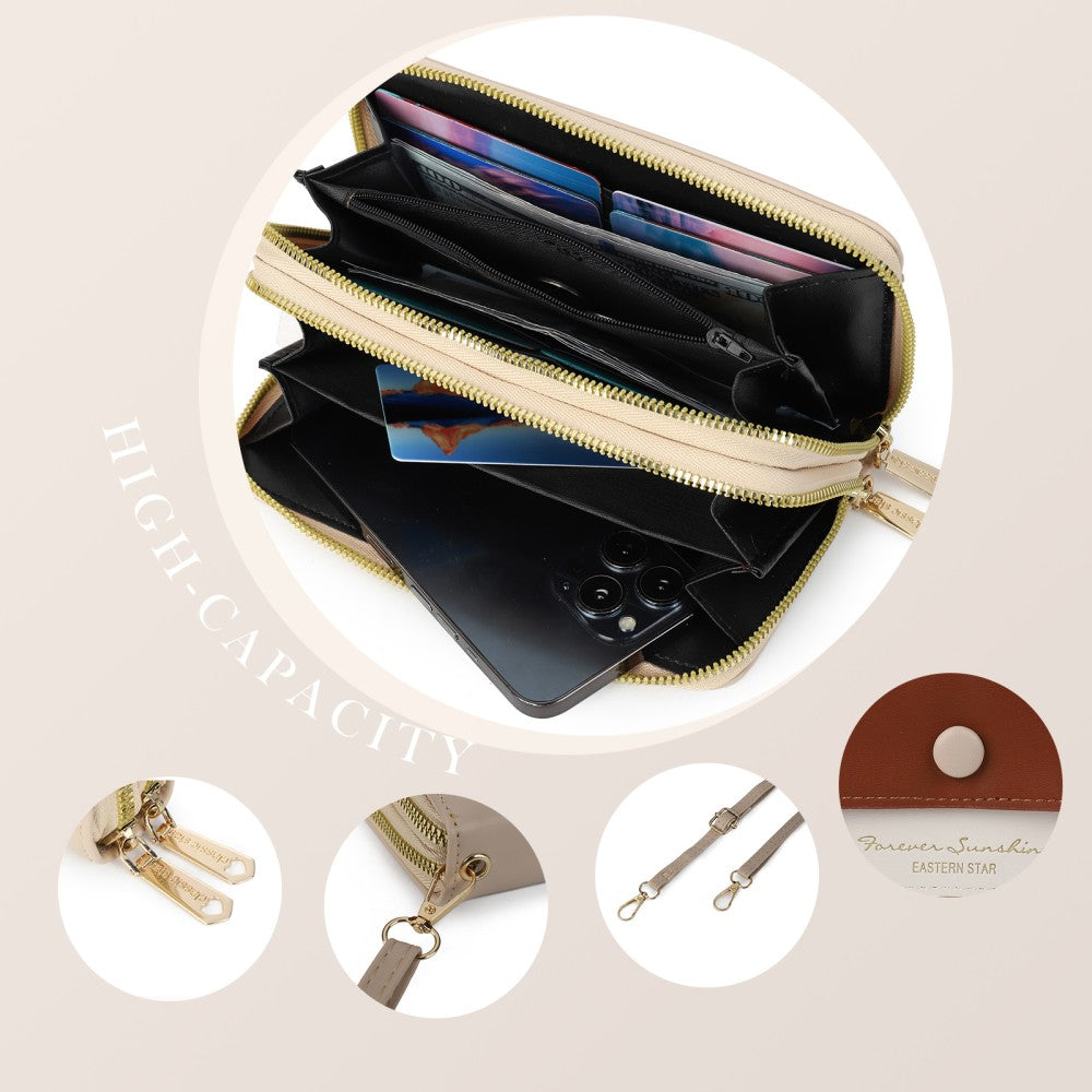 The purse offers high-capacity storage with multiple zippered compartments and dedicated card slots, ensuring your phone, wallet, keys, headphones, and cosmetics are neatly arranged and easy to access. A detachable and adjustable strap provides versatile styling options—wear it as a crossbody, shoulder bag, or carry it as a clutch.