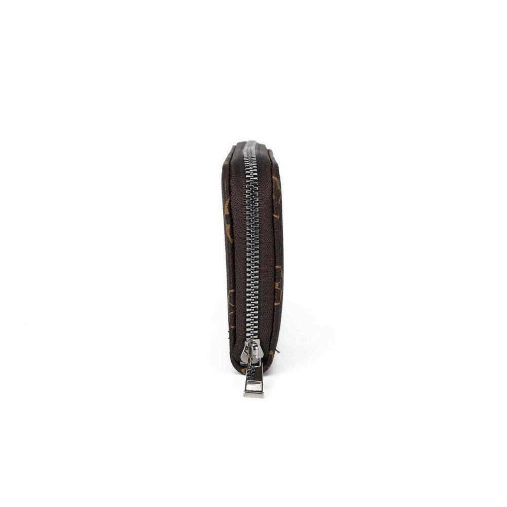 Brown Houndstooth PU Leather Long Zip Wallet – Large Capacity Women’s Purse with Card Holder & Coin