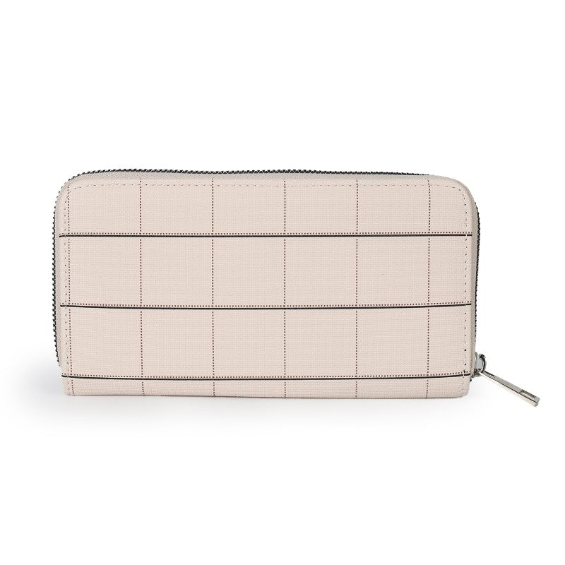 Elegant Beige Grid Long Wallet – PU Leather Zipper Clutch with Spacious Compartments
