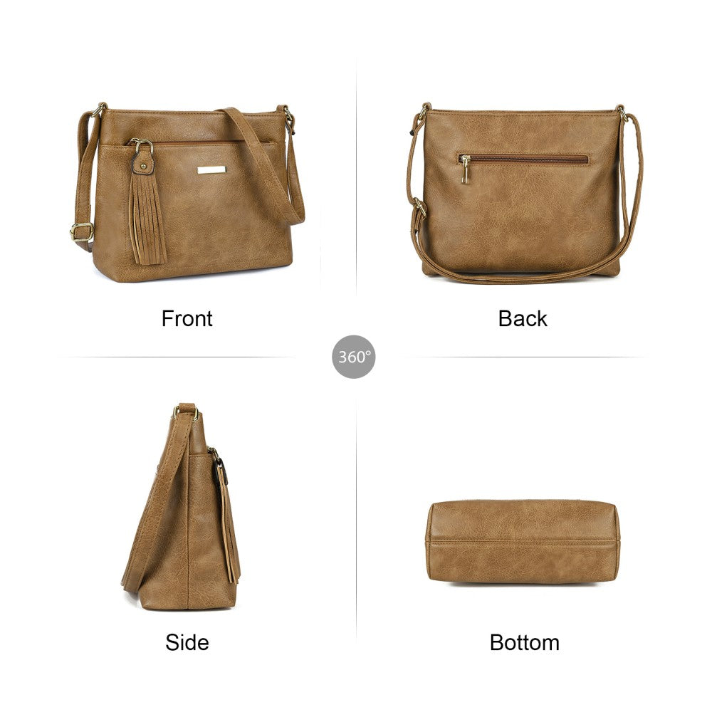 Brown PU Crossbody Shoulder Bag with Tassel Pendant – L28.7 x W11.5 x H22cm